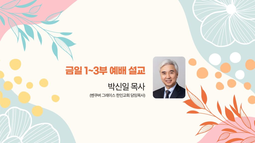 금일 1부에서 3부에는 벤쿠버 그레이스 한인교회 박신일 목사님께서 설교해주십니다은혜로운 설교를 해주신 박신일 목사님께 감사드립니다.