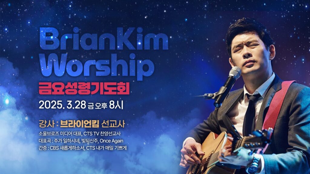 일시 : 2025. 3.28(금) 오후 8시 강사: 브라이언킴 선교사소울브로즈 미디어 대표, CTS TV 찬양선교사대표곡 : 주가 일하시네, 빛되신주, Once Again간증…