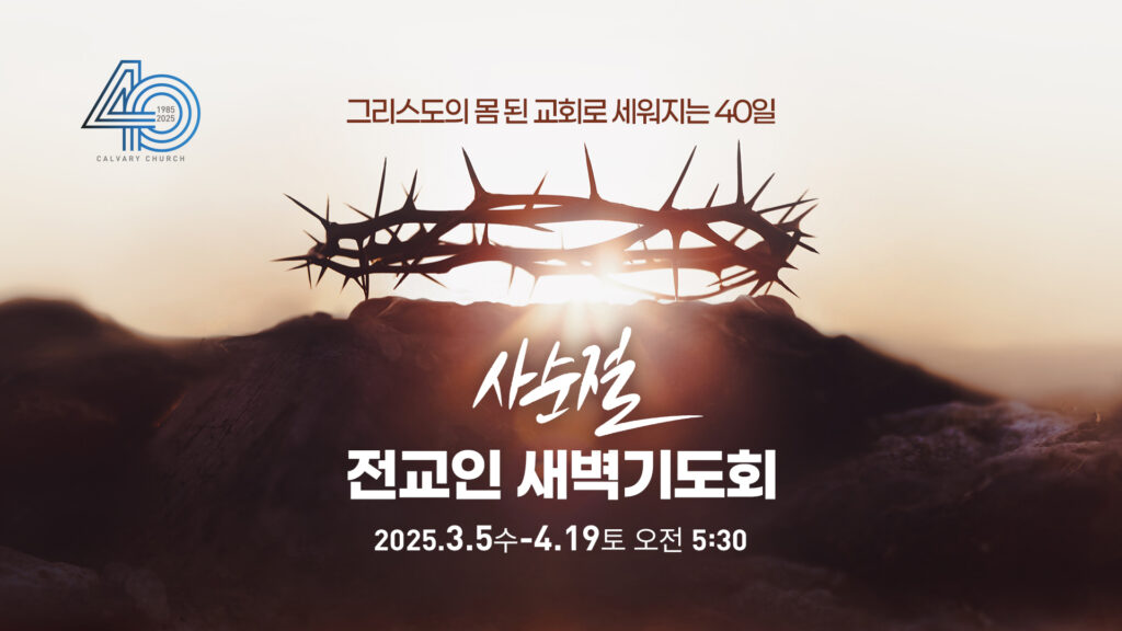 오는 3월 5일 수요일부터 '그리스도의 몸 된 교회로 세워지는 40일' 사순절 특별새벽기도회가 진행됩니다.예수님께서 걸으신 사역의 발걸음을 기억하며 끝없는 주님의 사랑을…