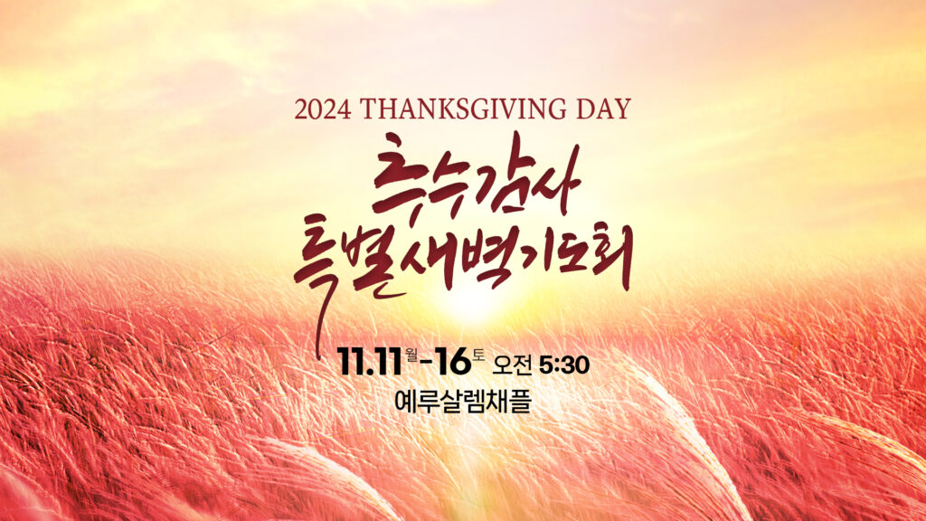 바로 내일부터 추수감사 특별새벽기도회가 시작됩니다. 그동안 우리의 삶을 신실하게 인도하신 하나님의 풍성한 은혜를 기억하며 감사하는 예배가 되길 바랍니다.