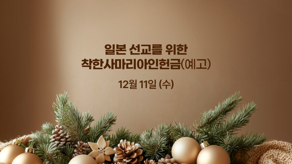 12월 11일 수요찬양예배는 일본 센다이 지역에서 사역하고 계신 박민규 선교사님의 선교보고가 있습니다.또한 예배 후 일본 선교를 위한 착한사마리아인 헌금이 있습니다.…