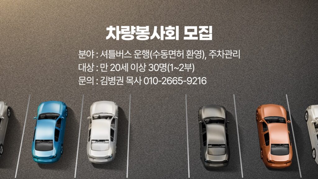 성도님들의 안전하고 편안한 예배를 돕고자 갈보리교회 차량봉사회에서는 그동안 아름다운 헌신을 이어오고 있습니다.최근 예배의 변동과 함께 발맞추어 새로이 헌신할 차량봉사회원들을 모집하고…