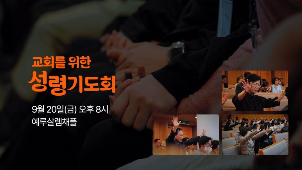 다음 주 금요일에는 교회를 위한 성령기도회가 예정되어 있습니다.9월 20일 금요일 저녁 8시 예루살렘 채플에서 진행되는 이번 기도회는 성령의 임재 가운데…