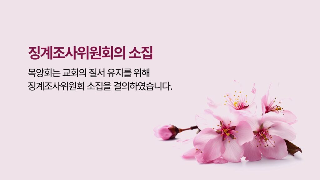 목양회는 교회의 질서 유지를 위해 징계조사위원회 소집을 결의하였습니다.