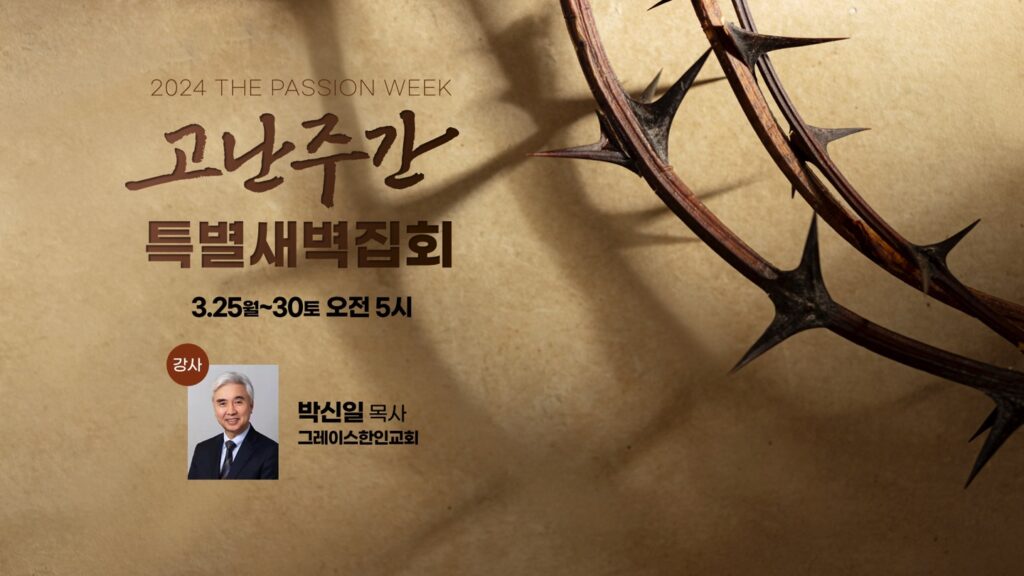 고난주간인 3월 25일부터 30일까지는 캐나다 그레이스 한인교회를 시무하시는 박신일 목사님께서 새벽말씀을 전해주십니다.예수님의 십자가를 더 깊이 묵상하는 거룩한 주일을 기대하며, 특별히…
