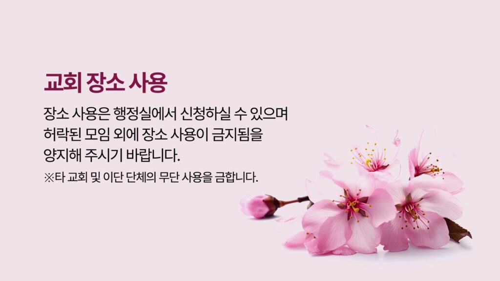최근 무단으로 타 교회 및 이단 단체의 장소 사용 사례가 발생하고 있습니다. 이와 관련해 교회 안의 모든 장소는 행정실을 통해서만…