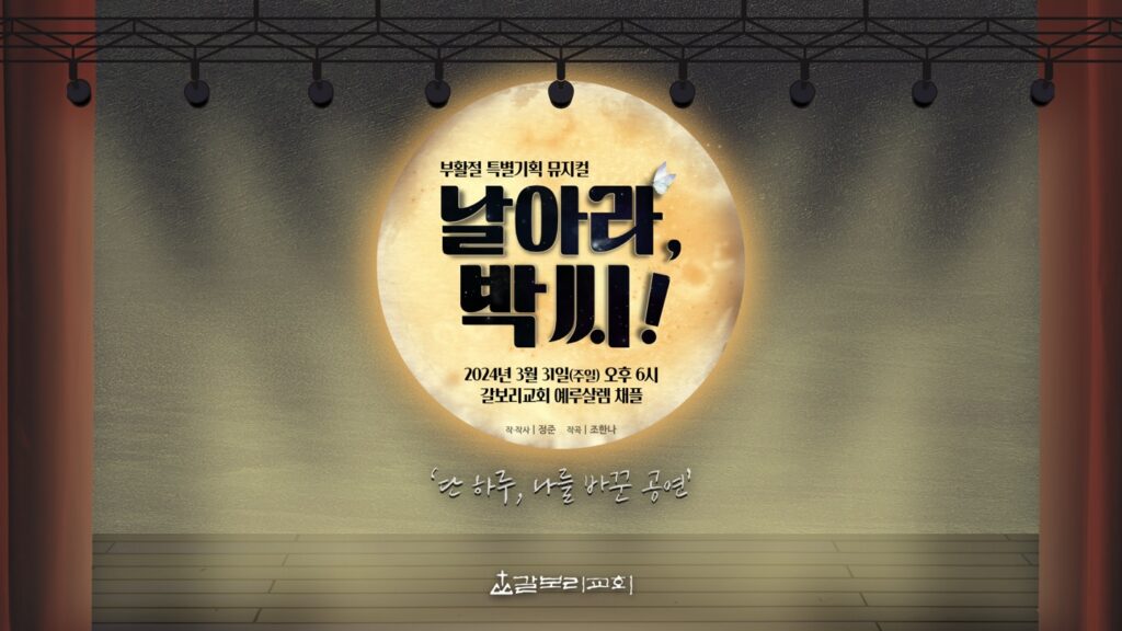 2024년 뮤지컬 “날아라박씨” 공연이 2주 앞으로 다가왔습니다.지난해 많은 이들의 마음을 감동시킨 뮤지컬 날아라 박씨가 부활절인 3월 31일 오후 6시, 예루살렘…