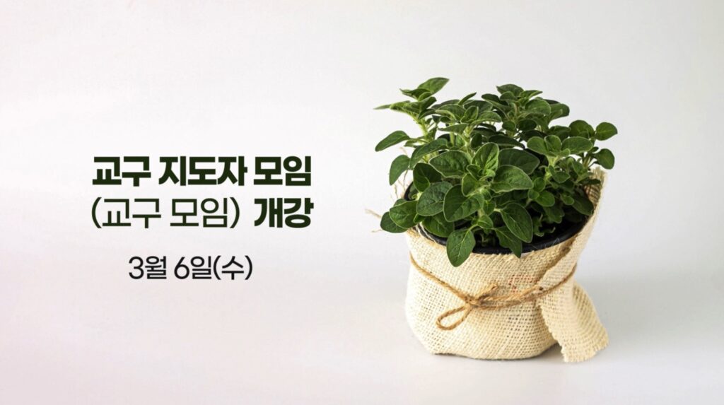 3월 6일에는 교구 개강이 있습니다. 목사님들과 함께하는 시간 풍성한 은혜를 기대하며 많이 참여해 주시기 바랍니다.