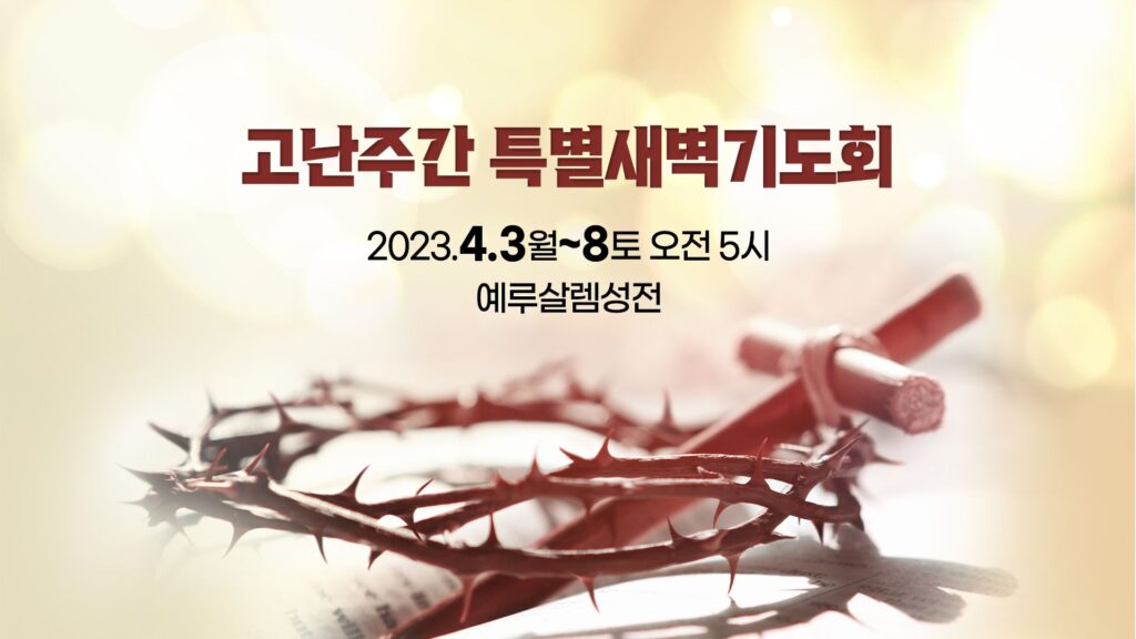 일시 : 2023.4.3월~8토 오전 5시 장소 : 예루살렘성전
