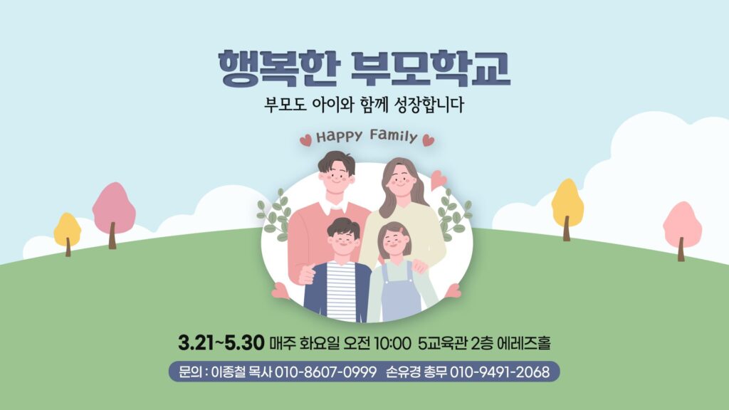 일시 : 3.21~5.30 매주 화요일 오전 10:00 장소 : 5교육관 2층 에레즈홀 문의 : 이종철 목사 010-8607-0999 손유경 총무 010-9491-2068