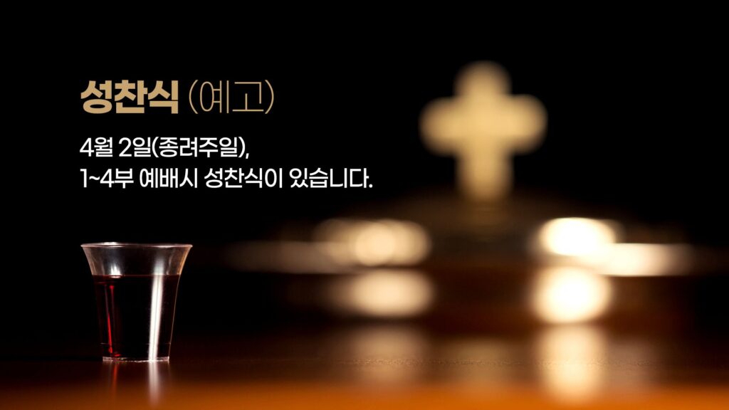 4월 2일(종려주일), 1~4부 예배시 성찬식이 있습니다.