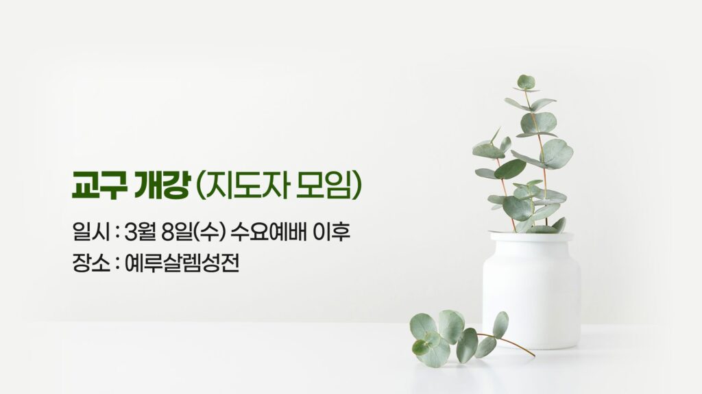 일시 : 3월 8일(수) 수요예배 이후 장소 : 예루살렘 성전