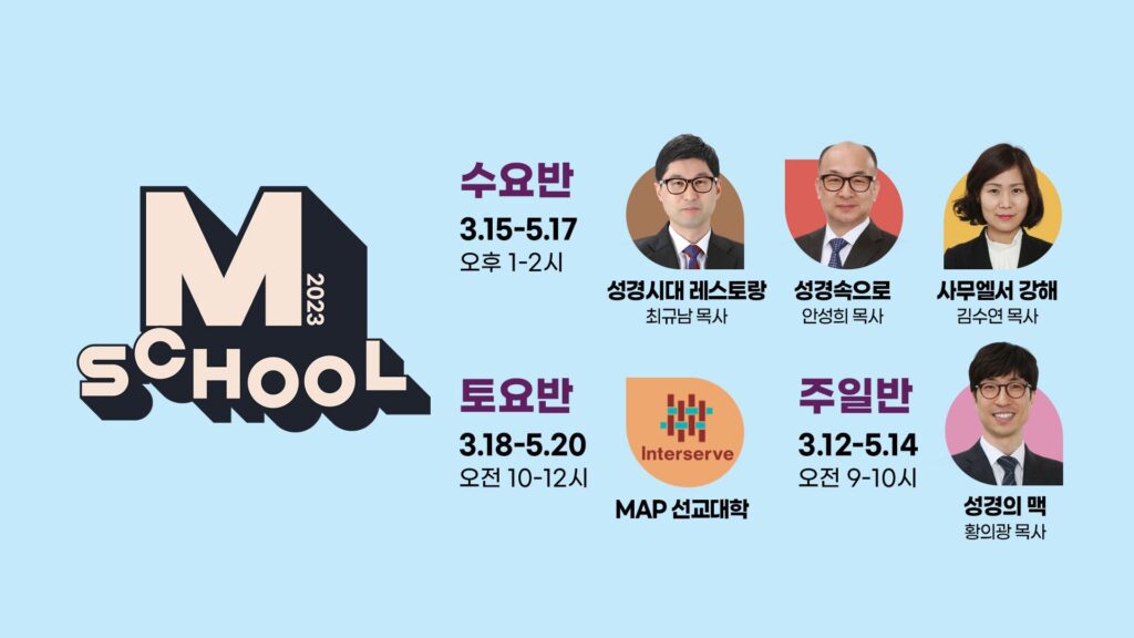 수요반 3.15-5.17 (오후 1-2시) 성경시대 레스토랑 - 최규남 목사 성경속으로 - 안성희 목사 사무엘서 강해 - 김수연 목사 토요반…