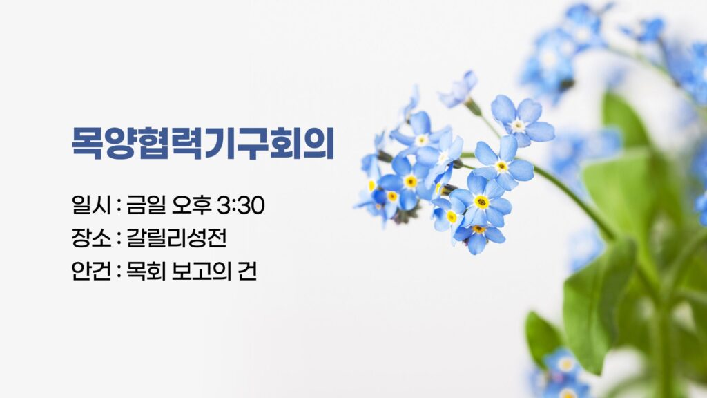 일시 : 금일 오후 3:30 장소 : 갈릴리성전 안건 : 목회 보고의 건