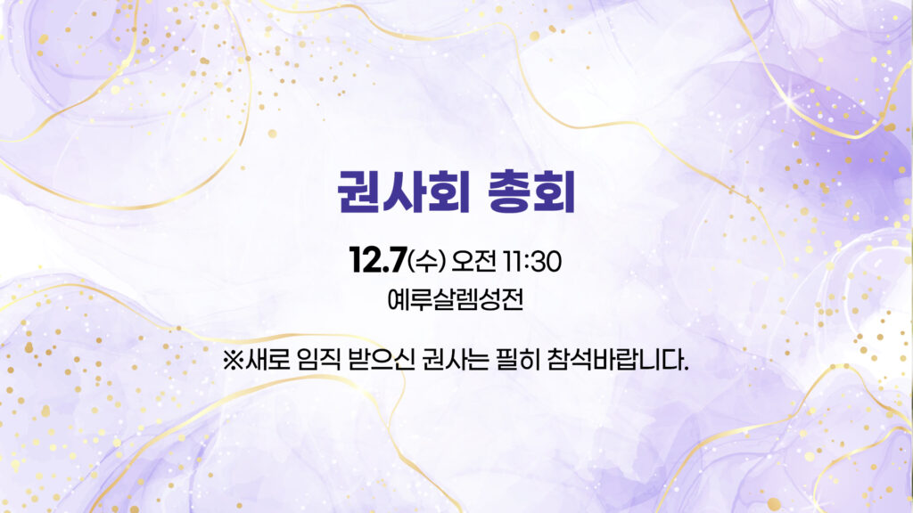 일시 : 12월 7일(수) 오전 11:30 장소 : 예루살렘성전