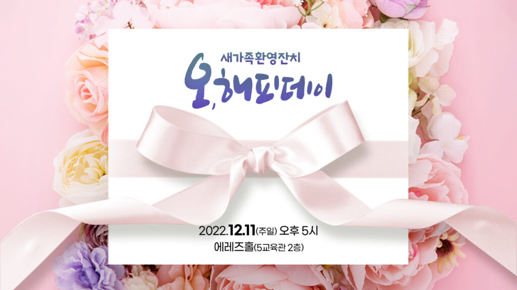 일시 : 2022.12.11(주일) 오후 5시 장소 : 에레즈홀(5교육관 2층)
