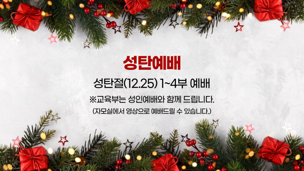 성탄절(12.25) 1-4부 예배 *교육부는 성인예배와 함께 드립니다 (자모실에서 영상으로 예배드릴 수 있습니다)