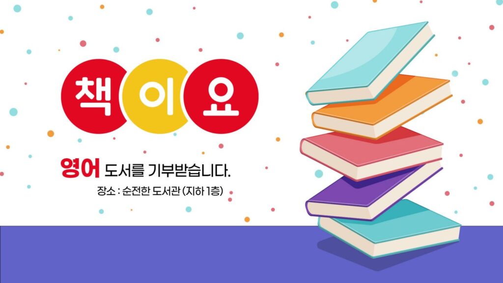 영어도서를 기부받습니다 장소 : 순전한 도서관 (지하 1층)