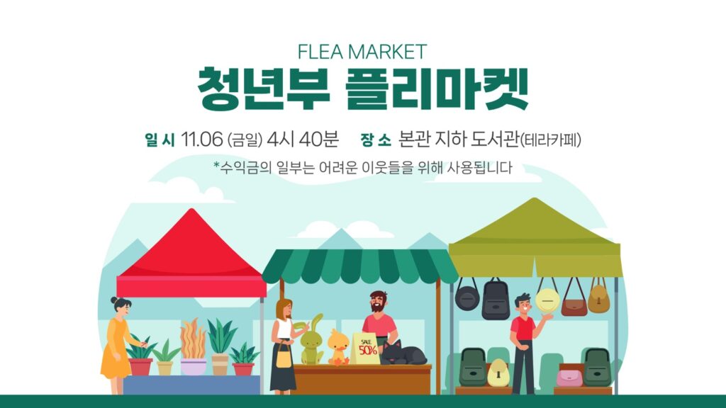 일시 : 11.6(주일) 4시 40분 장소 : 본관 지하 도서관 (테라카페) *수익금의 일부는 어려운 이웃들을 위해 사용됩니다
