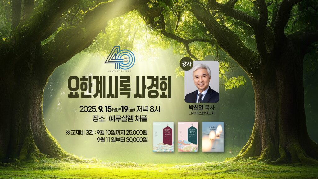 오는 9월 15일 월요일부터 19일, 금요일까지 '요한계시록 사경회' 가 진행됩니다 매일 오후 8시부터 10시까지 진행되는 이번 사경회는 그레이스한인교회 박신일 목사님께서…