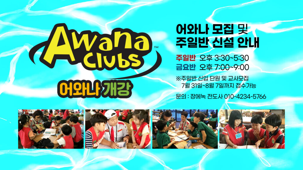 주일반 : 오후 3:30~5:30 금요반 : 오후 7:00~9:00 *주일반 신입 단원 및 교사모집 7월 31일 ~ 8월 7일까지 접수가능 …