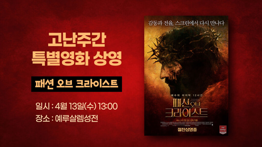 패션 오브 크라이스트 일시 : 4월 13일(수) 13:00 장소 : 예루살렘 성전