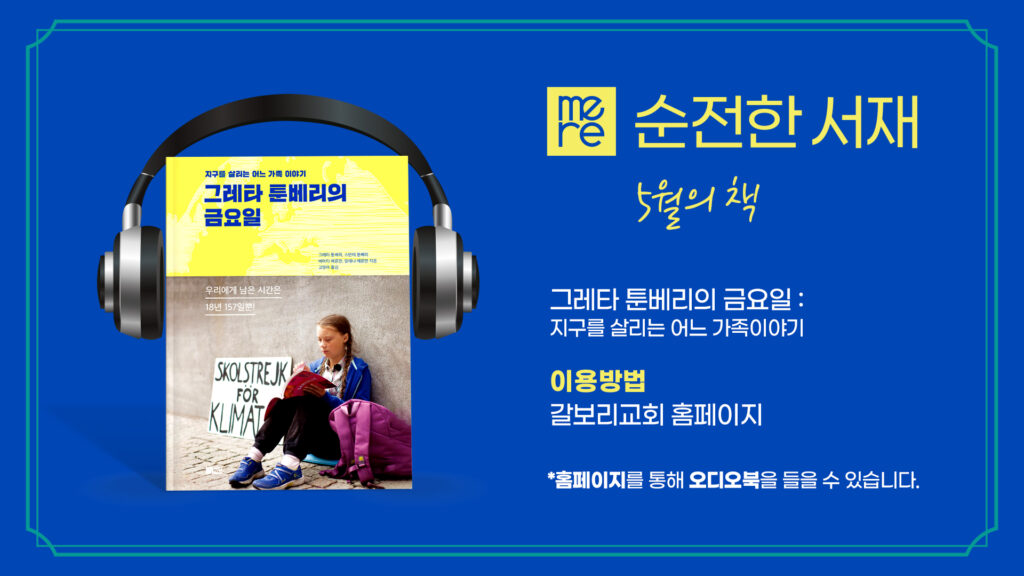 5월 서적 : 그레타 툰베리의 금요일(지구를 살리는 어느 가족 이야기) 이용방법 : 갈보리교회 홈페이지