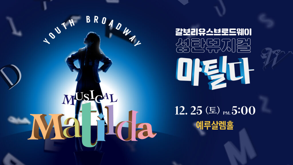 유스브로드웨이 성탄뮤지컬 마틸다 일시: 12월25일(토) 오후 5시 장소: 예루살렘성전