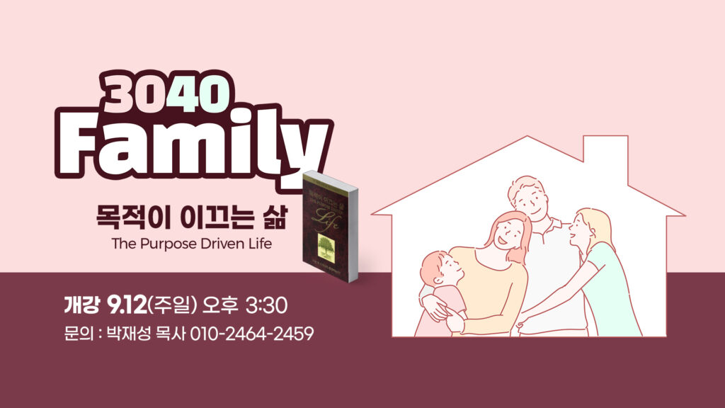 목적이 이끄는 삶 9.12(주일) 오후 3:30 문의: 박재성 목사 010-2464-2459