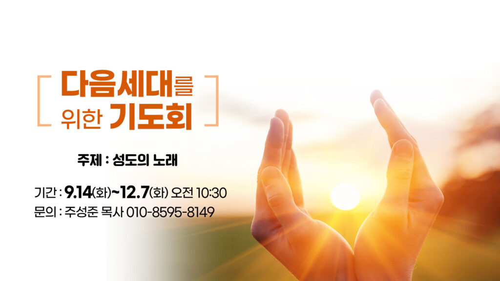 주제: 성도의 노래 기간: 9.14(화)~12.7(화) 오전 10:30 문의: 주성준 목사 010-8595-8149