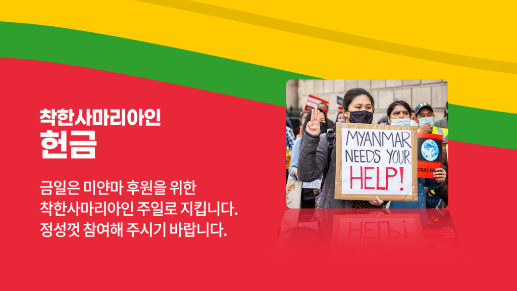 금일은 미얀마 후원을 위한 착한사마리아인 주일로 지킵니다