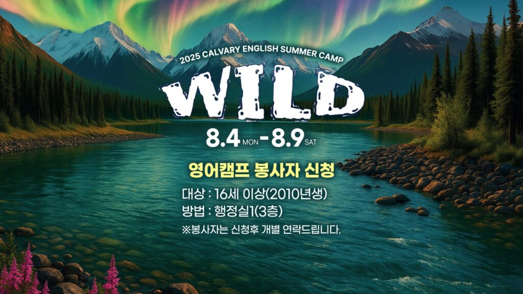 오는 8월 4일부터 9일까지 'WILD'라는 주제로 영어캠프가 진행됩니다. 미국 시애틀 형제교회와 함께하여 더 역동적이고 풍성한 캠프로 준비되었습니다. 더불어 함께할 봉사자도 모집하고…