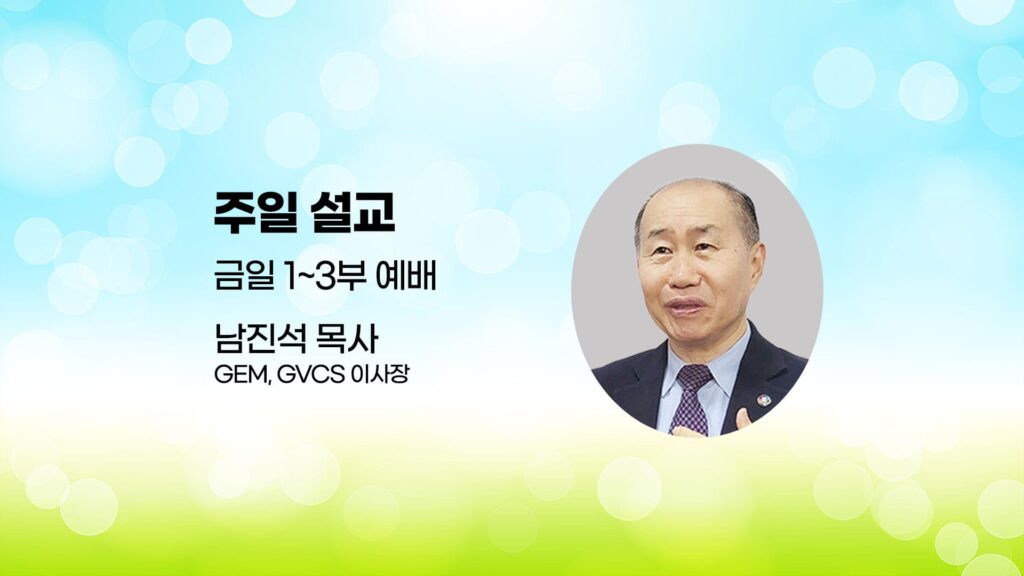 금일 1~3부 예배 설교는 남진석 목사님(GEM, GVCS이사장)께서 하십니다설교해 주셔서 감사합니다.