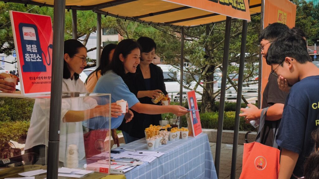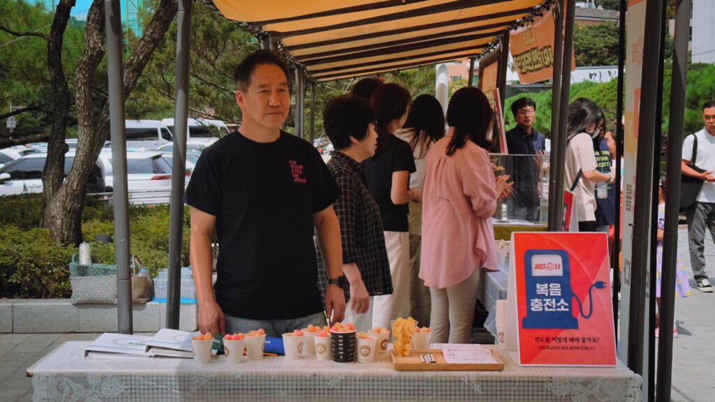 지난 주 주일 예배 후 광장에서 42기 전도학교 훈련생 모집부스가 열렸습니다.