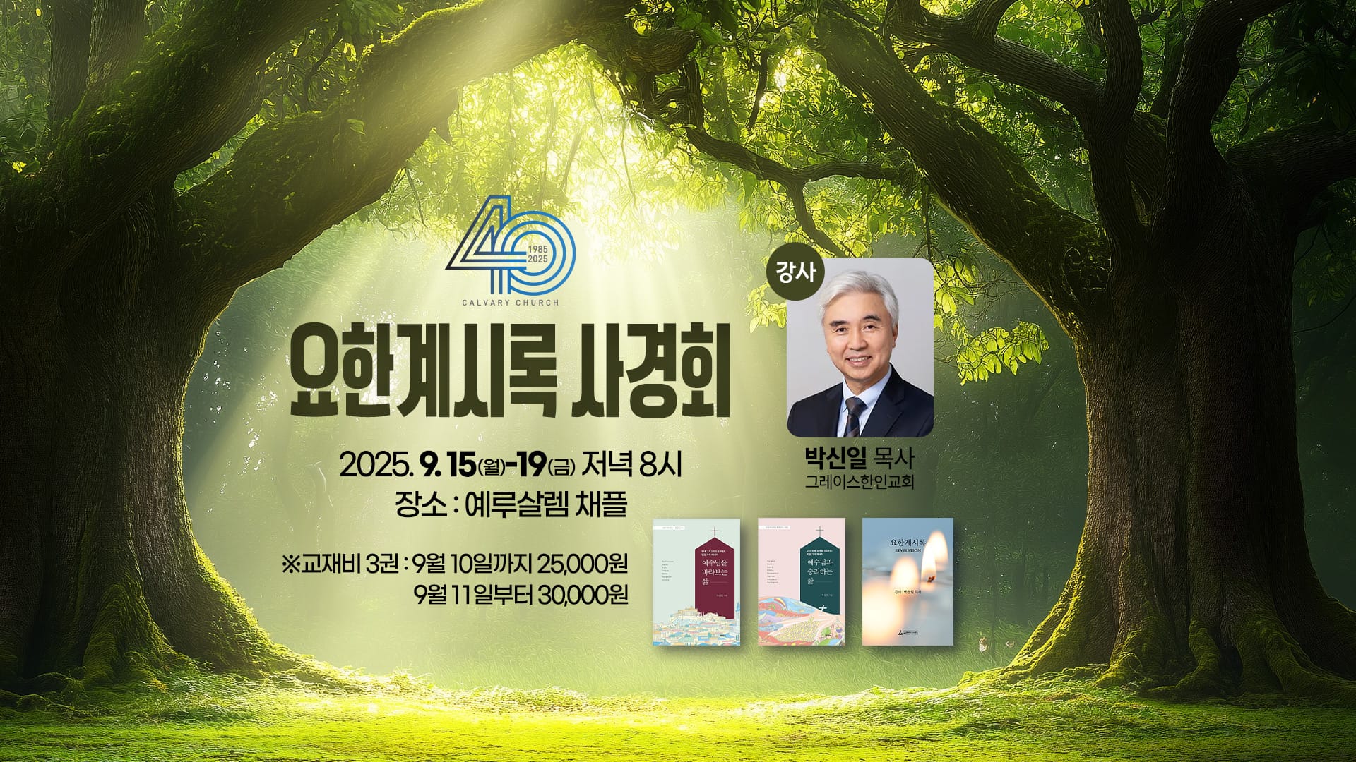 오는 9월 15일 월요일부터 19일, 금요일까지 ‘요한계시록 사경회’ 가 진행됩니다